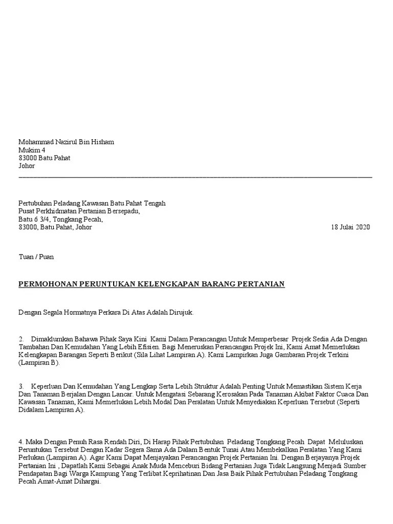 10 contoh surat permohonan bantuan alat barang dana dan 10 contoh surat permohonan . Mukim 4 83000 batu pahat johor. Contoh surat rasmi permohonan bantuan peralatan surasm dubai khalifa. Doc proposal embung leke koning zanit fathan academia edu. Contoh surat rasmi cuti sakit sekolah.
